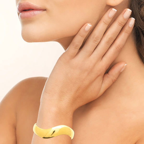 Bracelet jonc en acier doré avec un léger mouvement de vague.
